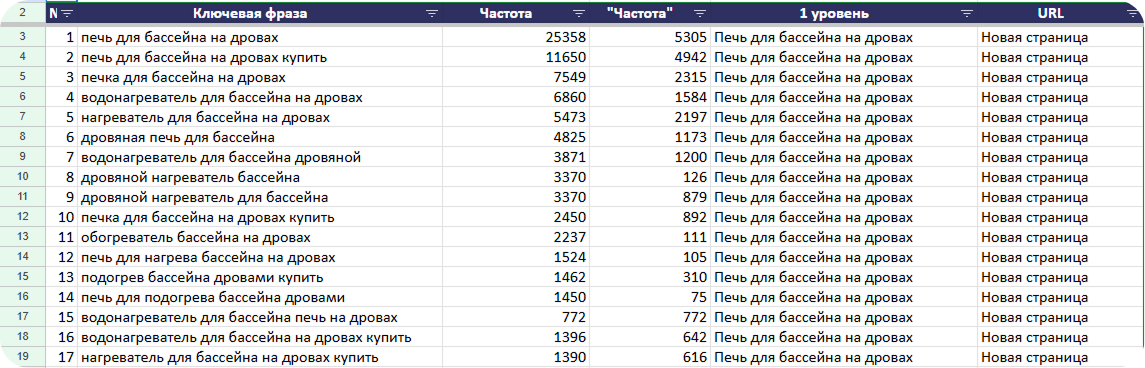 - группировка ключевых слов по тематическим кластерам;